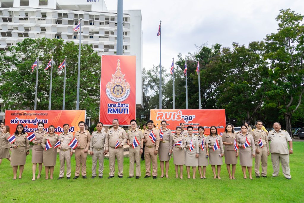 โดยมี รองศาสตราจารย์ ดร.โฆษิต ศรีภูธร รักษาราชการแทนอธิการบดี มทร.อีสาน เป็นผู้นำคณะผู้บริหาร คณาจารย์ และเจ้าหน้าที่ เข้าร่วมกิจกรรมอย่างพร้อมเพรียง ซึ่งภายในกิจกรรมประกอบด้วย การเคารพธงชาติและร้องเพลงชาติไทย เพื่อแสดงความภาคภูมิใจในความเป็นไทย และปฏิบัติตามมติคณะรัฐมนตรีที่กำหนดให้วันที่ 28 กันยายน ของทุกปีเป็นวันพระราชทานธงชาติไทย หลังเสร็จสิ้นพิธีเคารพธงชาติ คณะผู้บริหาร คณาจารย์ และเจ้าหน้าที่ ได้ร่วมกันร้องเพลง สดุดีราชมงคล เพื่อแสดงออกถึงความรัก ความสามัคคี และความภักดีต่อมหาวิทยาลัย